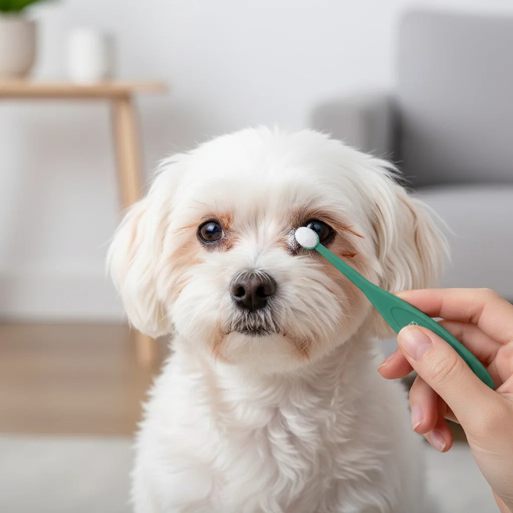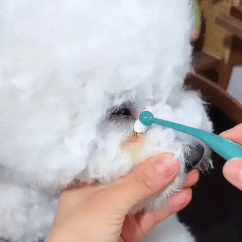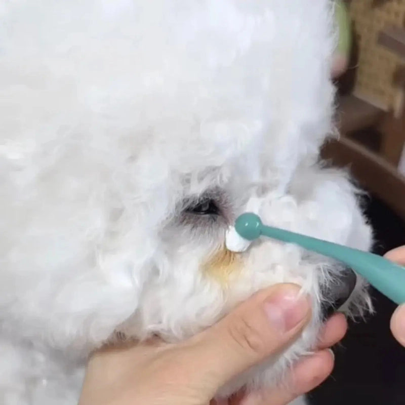 Start with a clean, dry face. Gently wipe away any excess moisture or debris around your pet's eyes. This ensures the powder adheres perfectly and works its magic without any interference, giving you the best results for a brighter look.